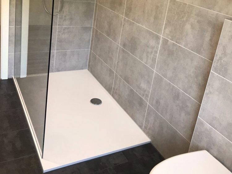 Eine bodentiefe Dusche, Hänge-WC, ein